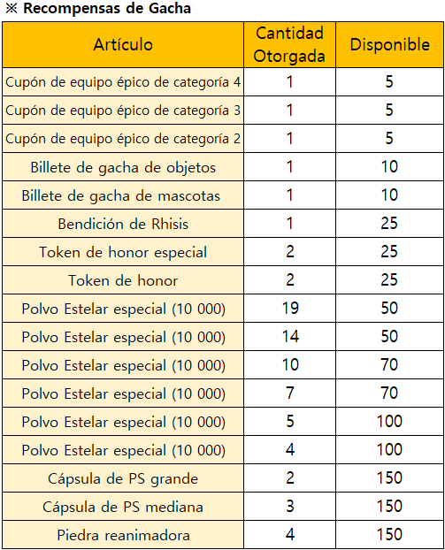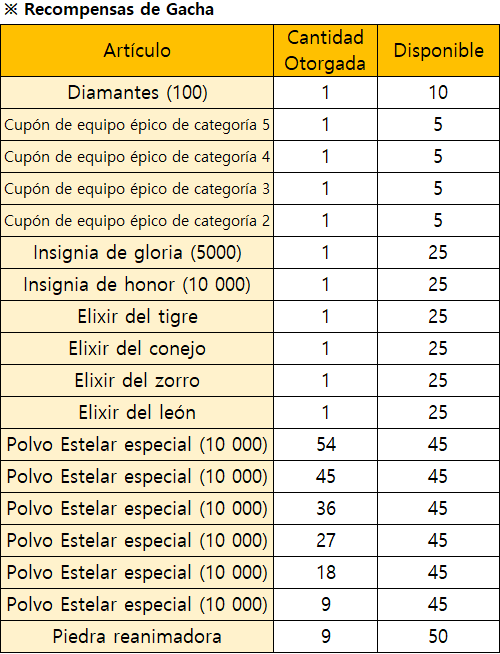 *El evento finalizará de forma inmediata al agotarse todas las recompensas de Gacha Limitada.