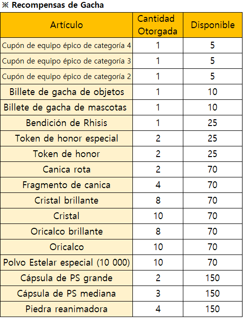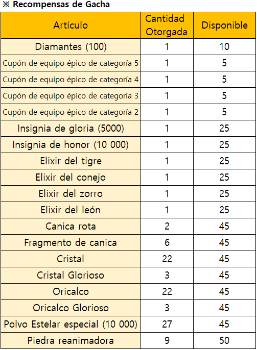 *El evento finalizará de forma inmediata al agotarse todas las recompensas de Gacha Limitada.