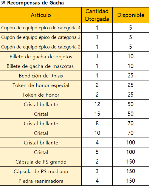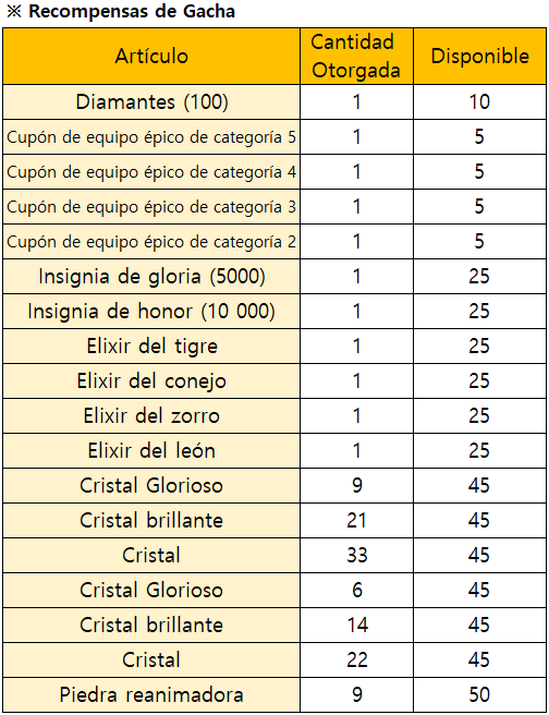 *El evento finalizará de forma inmediata al agotarse todas las recompensas de Gacha Limitada.