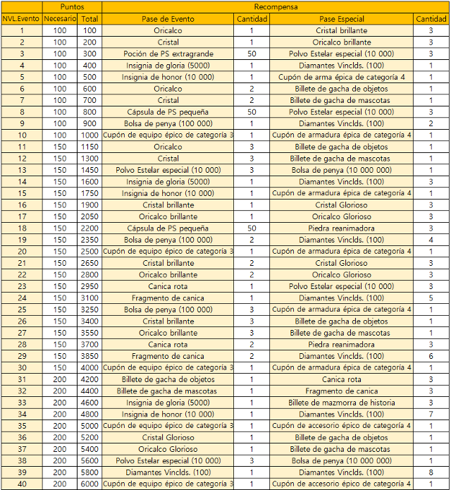 • Para éste evento, solo las Mazmorras Histórica, Diarias, y de Grupo se contabilizarán para los puntos de Mazmorras Completadas.