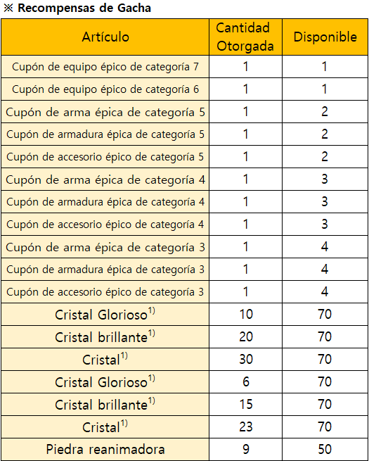 *El evento finalizará de forma inmediata al agotarse todas las recompensas de Gacha Limitada.