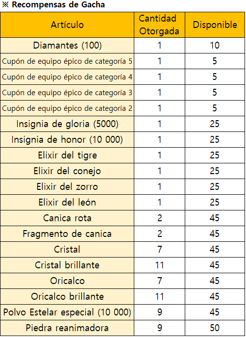 *El evento finalizará de forma inmediata al agotarse todas las recompensas de Gacha Limitada.