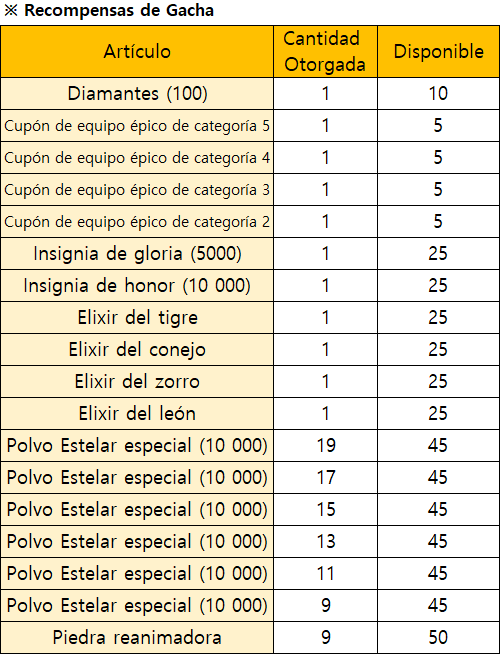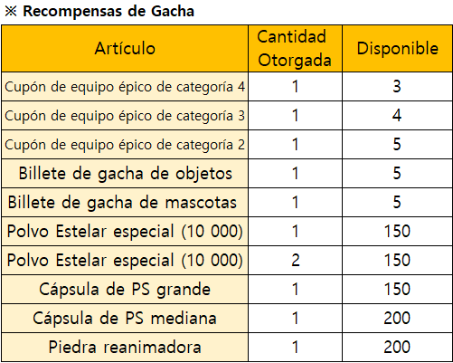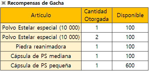 *El evento finalizará de forma inmediata al agotarse todas las recompensas de Gacha Limitada.