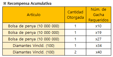 *El evento finalizará de forma inmediata al agotarse todas las recompensas de Gacha Limitada.