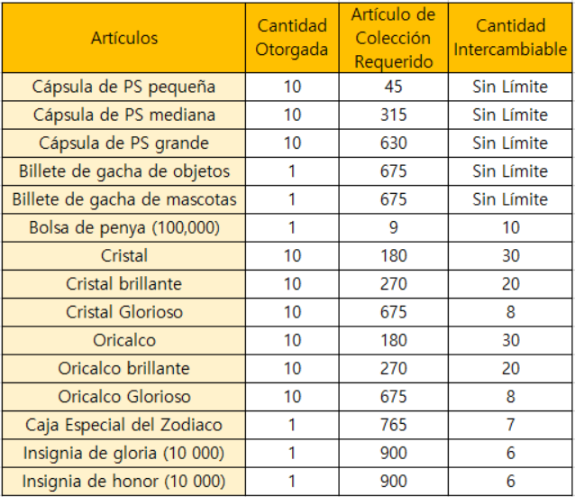 • Caja Especial del Zodiaco: Consiga 1 de los siguientes artículos de forma aleatoria