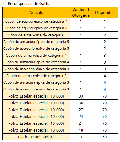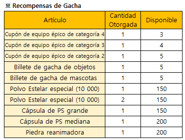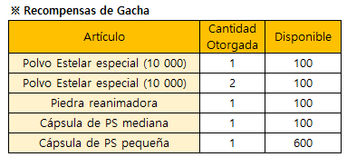 *El evento finalizará de forma inmediata al agotarse todas las recompensas de Gacha Limitada.