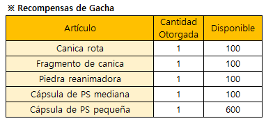 *El evento finalizará de forma inmediata al agotarse todas las recompensas de Gacha Limitada.
