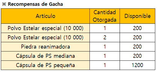 *El evento finalizará de forma inmediata al agotarse todas las recompensas de Gacha Limitada.