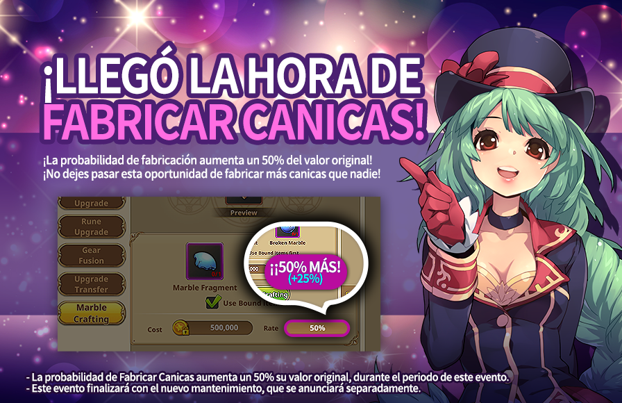 DESCRIPCIÓN: ¡La probabilidad de éxito de creación de gemas se duplica con respecto al valor original! ¡No pierdas esta oportunidad de crear más gemas que nadie!