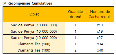 Pour les récompenses d'événements, veuillez consulter le tableau ci-dessous afin d’obtenir plus de détails.