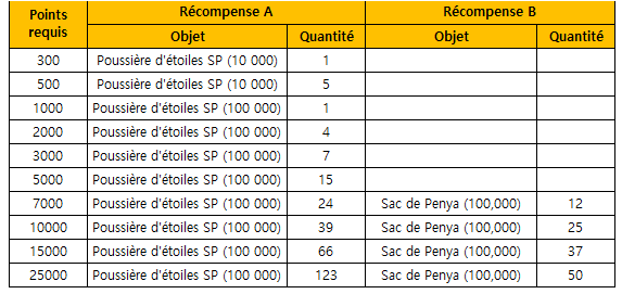 ● Récompense de l’événement (voir ‘Récompense’-‘Activité Quotidienne’ dans le jeu pour référence)