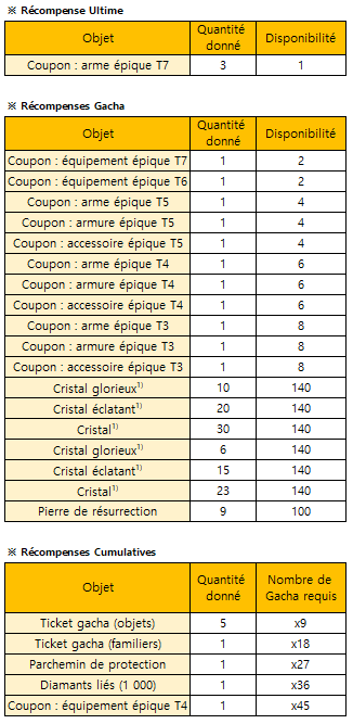 *L'événement se terminera tôt si tous les prix pour le Gacha Limité ont été épuisés.