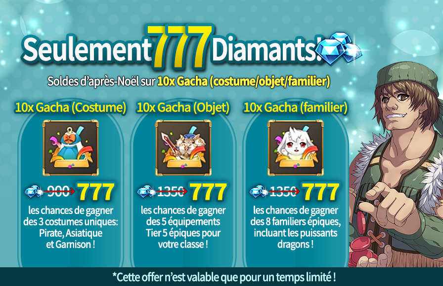 10x Costume Gacha 900 Diamants -> 777 Diamants