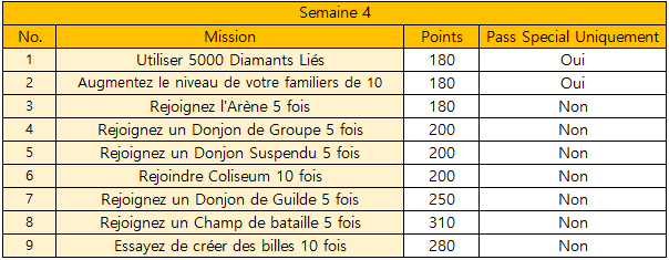 Pour les récompenses d'événements, veuillez consulter le tableau ci-dessous afin d’obtenir plus de détails.