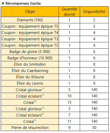 *L'événement se terminera tôt si tous les prix pour le Gacha Limité ont été épuisés.