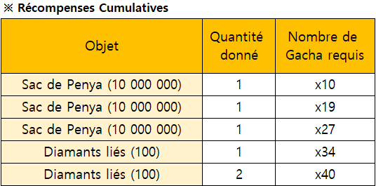 *L'événement se terminera tôt si tous les prix pour le Gacha Limité ont été épuisés.