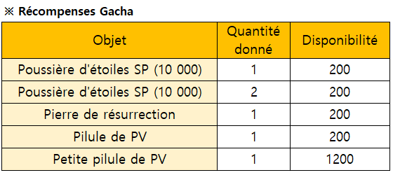 *L'événement se terminera tôt si tous les prix pour le Gacha Limité ont été épuisés.