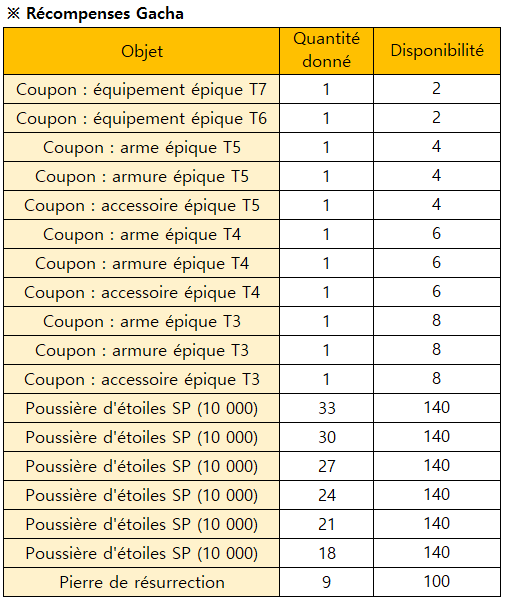 Description: Vous pouvez obtenir des objets au hasard dans ce Gacha Limité. Profitez de cette chance pour obtenir divers objets et courir la chance de gagner un prix rare !