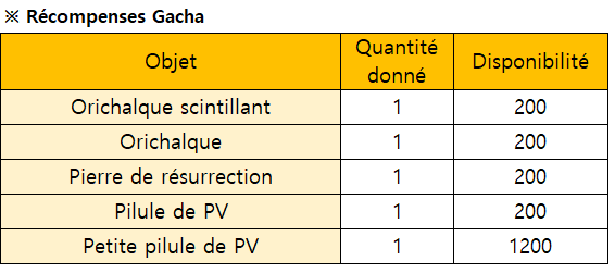 Pour les récompenses d'événements, veuillez consulter le tableau ci-dessous afin d’obtenir plus de détails.