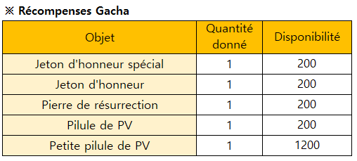 *L'événement se terminera tôt si tous les prix pour le Gacha Limité ont été épuisés.