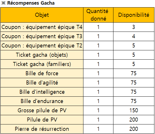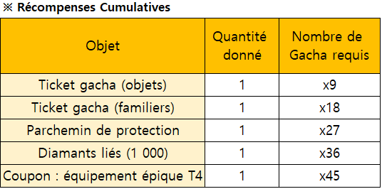 1. Les points ne sont récompensés que pour les Gacha (familier) réalisés pendant la période de l'événement.