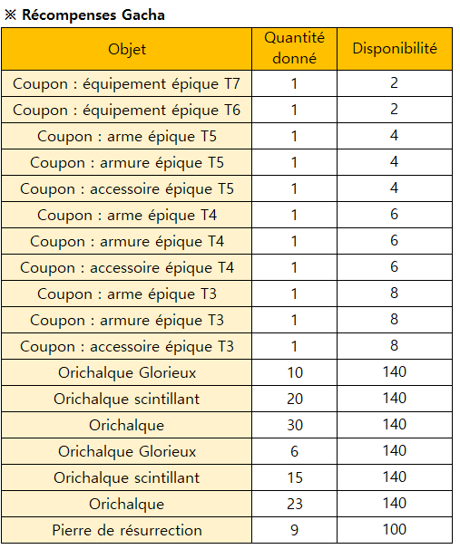● Récompense de l’événement (voir ‘Récompense’-‘Activité Quotidienne’ dans le jeu pour référence)