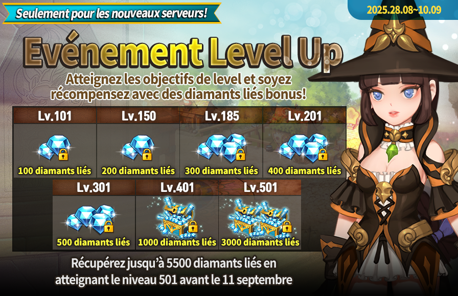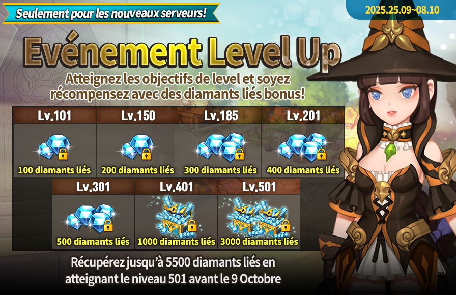 DÉSCRIPTION: Passez au niveau supérieur et obtenez des récompenses! Détails répertoriés dans la bannière de l'événement concerné.