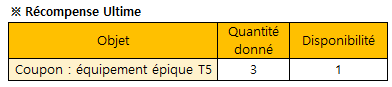 Pour les récompenses d'événements, veuillez consulter le tableau ci-dessous afin d’obtenir plus de détails.