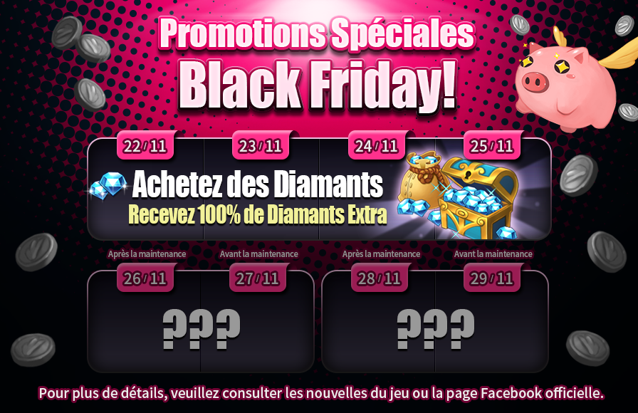 Si vous achetez des diamants, vous recevrez 100% de diamants en plus du 22 au 25 novembre !*