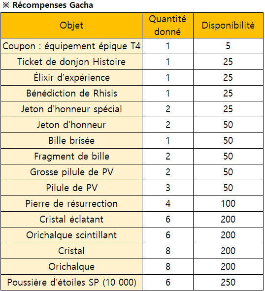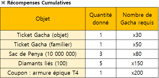 ● Récompense de l’événement (voir ‘Récompense’-‘Activité Quotidienne’ dans le jeu pour référence)