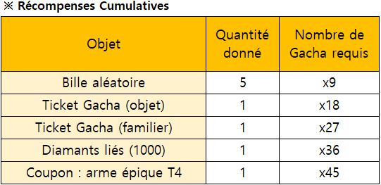 *L'événement se terminera tôt si tous les prix pour le Gacha Limité ont été épuisés.