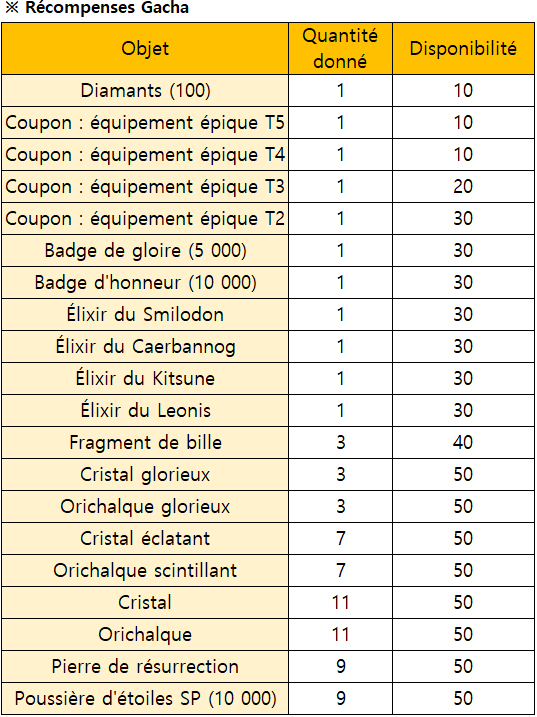 Description: Vous pouvez obtenir des objets au hasard dans ce Gacha Limité. Profitez de cette chance pour obtenir divers objets et courir la chance de gagner un prix rare !