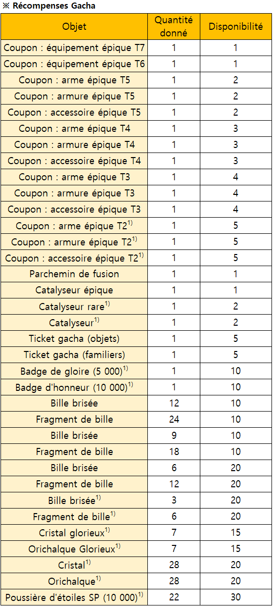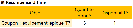 *Vous obtiendrez l'un des drops énumérées ci-dessus