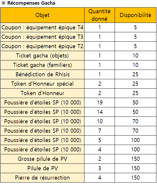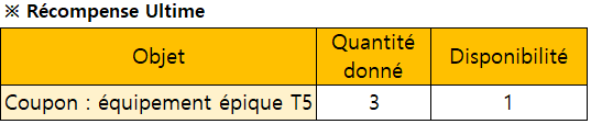 3. Les classements sont comptés après avoir reçu plus d'1 point au cours de la période de l'événement. Si le nombre minimum de points requis par chaque classement n'a pas été atteint, seule la récompense de classement inférieure ayant satisfait l'exigence de points minimum pourra être obtenue.