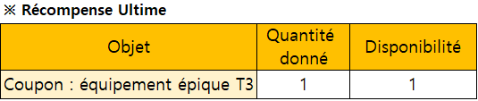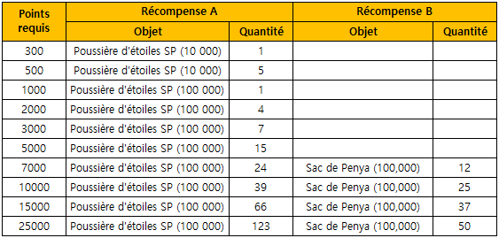 ● Récompense de l’événement (voir ‘Récompense’-‘Activité Quotidienne’ dans le jeu pour référence)