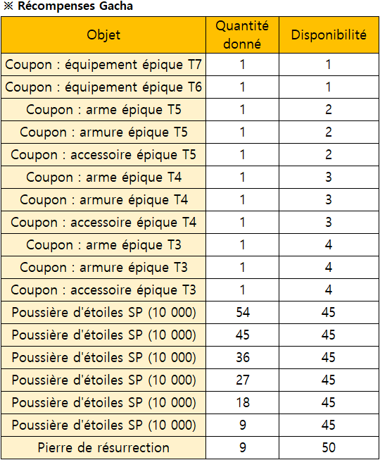 ● Récompense de l’événement (voir ‘Récompense’-‘Activité Quotidienne’ dans le jeu pour référence)
