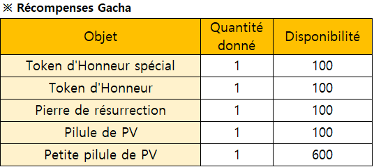 *L'événement se terminera tôt si tous les prix pour le Gacha Limité ont été épuisés.