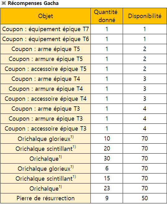*Vous obtiendrez l'un des drops énumérées ci-dessus