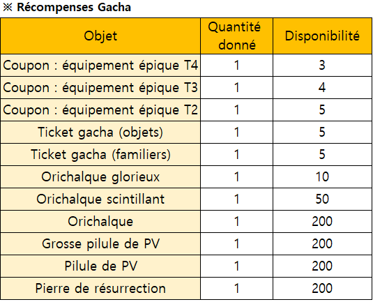 ● Récompense de l’événement (voir ‘Récompense’-‘Activité Quotidienne’ dans le jeu pour référence)