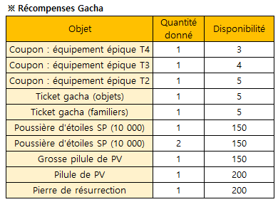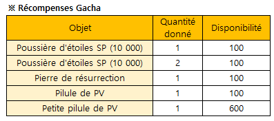 Pour les récompenses d'événements, veuillez consulter le tableau ci-dessous afin d’obtenir plus de détails.