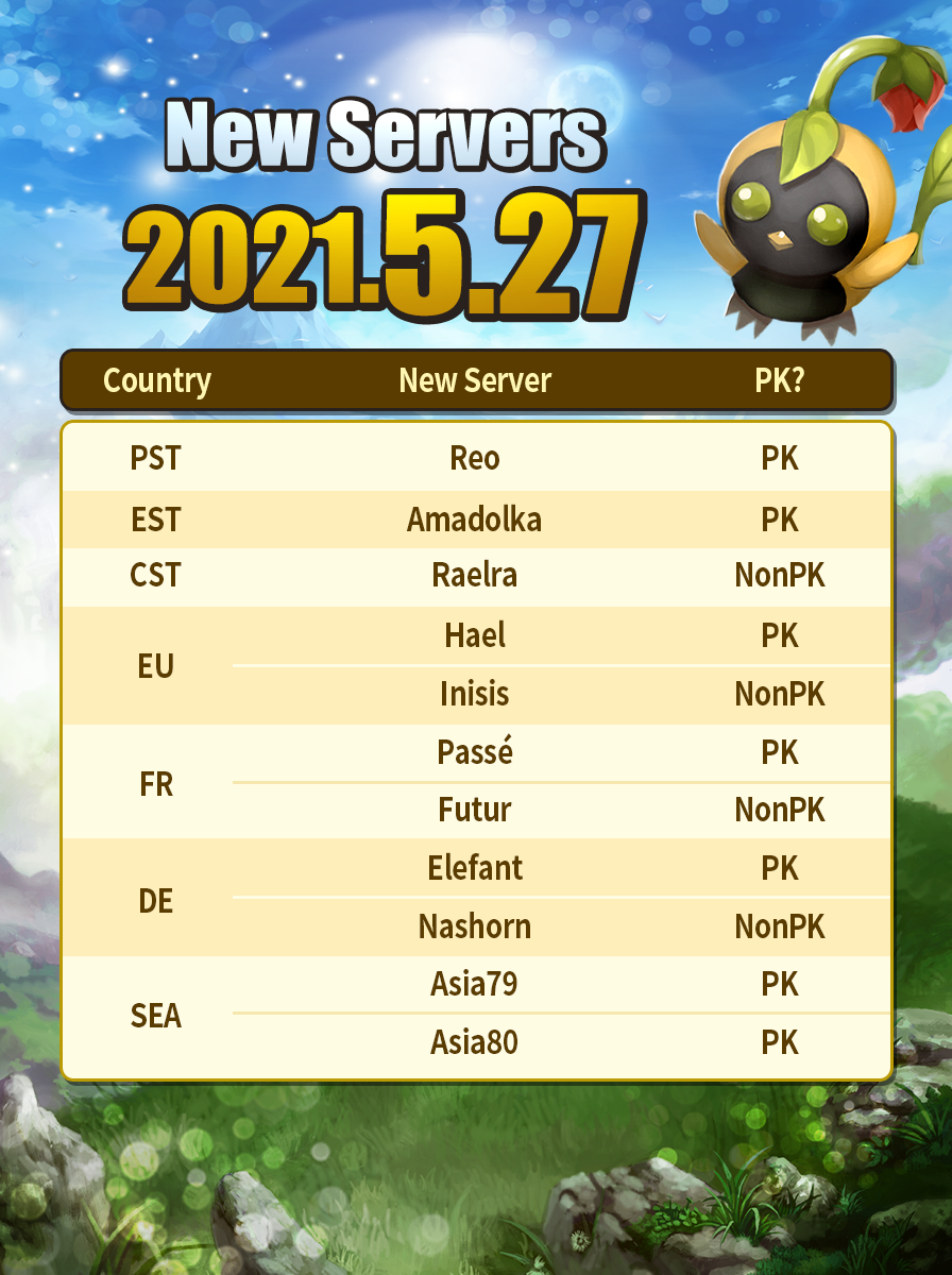 Aujourd'hui, nous allons ouvrir de nouveaux serveurs US Ouest, US Est, US Central, EU, FR, DE et SEA et activer des événements pour ces derniers.