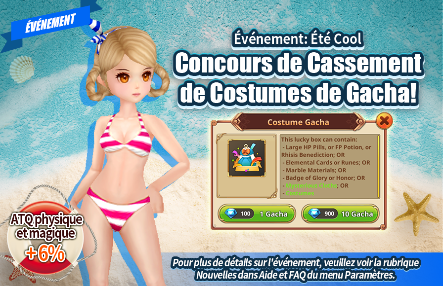 Description: Vous pouvez obtenir des objets au hasard dans ce Gacha Limité. Profitez de cette chance pour obtenir divers objets et courir la chance de gagner un prix rare !