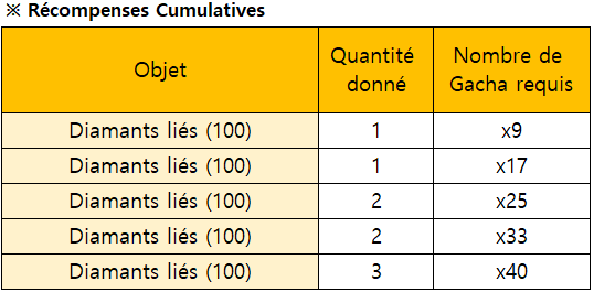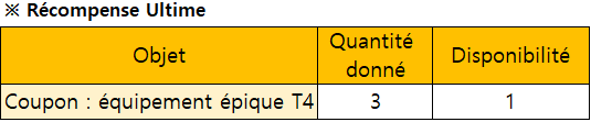 ● Récompense de l’événement (voir ‘Récompense’-‘Activité Quotidienne’ dans le jeu pour référence)