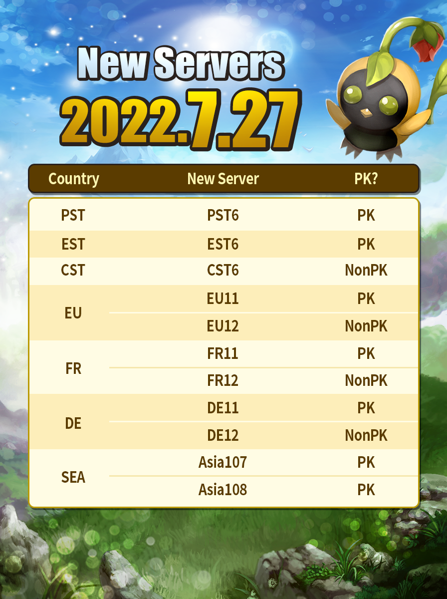 Aujourd'hui, nous allons ouvrir de nouveaux serveurs US Ouest, US Est, US Central, EU, FR, DE et SEA et activer des événements pour ces derniers.