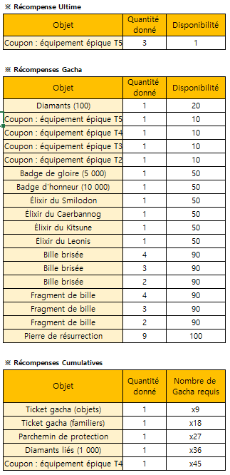 *L'événement se terminera tôt si tous les prix pour le Gacha Limité ont été épuisés.