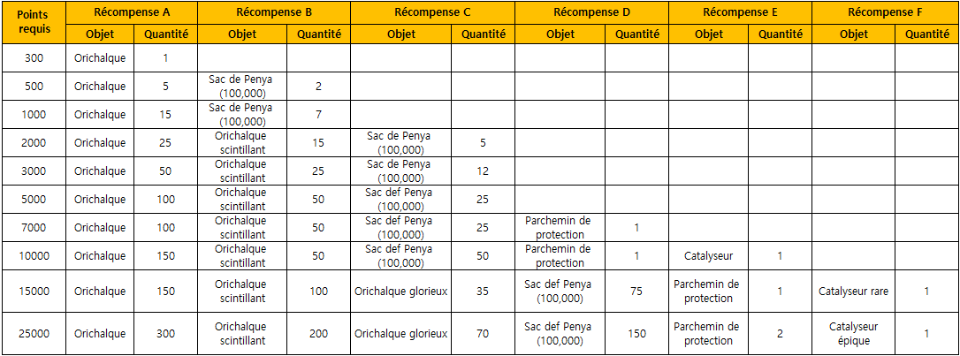 ● Récompense de l’événement (voir ‘Récompense’-‘Activité Quotidienne’ dans le jeu pour référence)