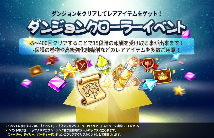 • クリアカウントランク1位の報酬は、イベント終了後に自動的にメールボックスへ送られます。