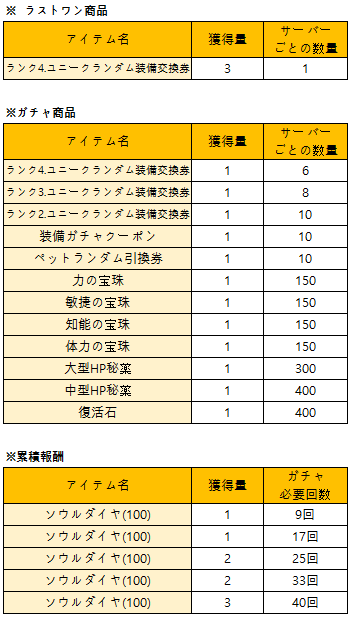 イベント期間中に獲得することができる報酬は以下の通りです。