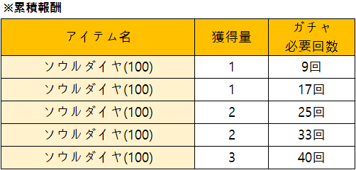 1回ガチャ時に消費されるソウルゴールド:500万ソウルゴールド