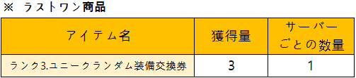 ランク3ユニークランダム装備引換券1個